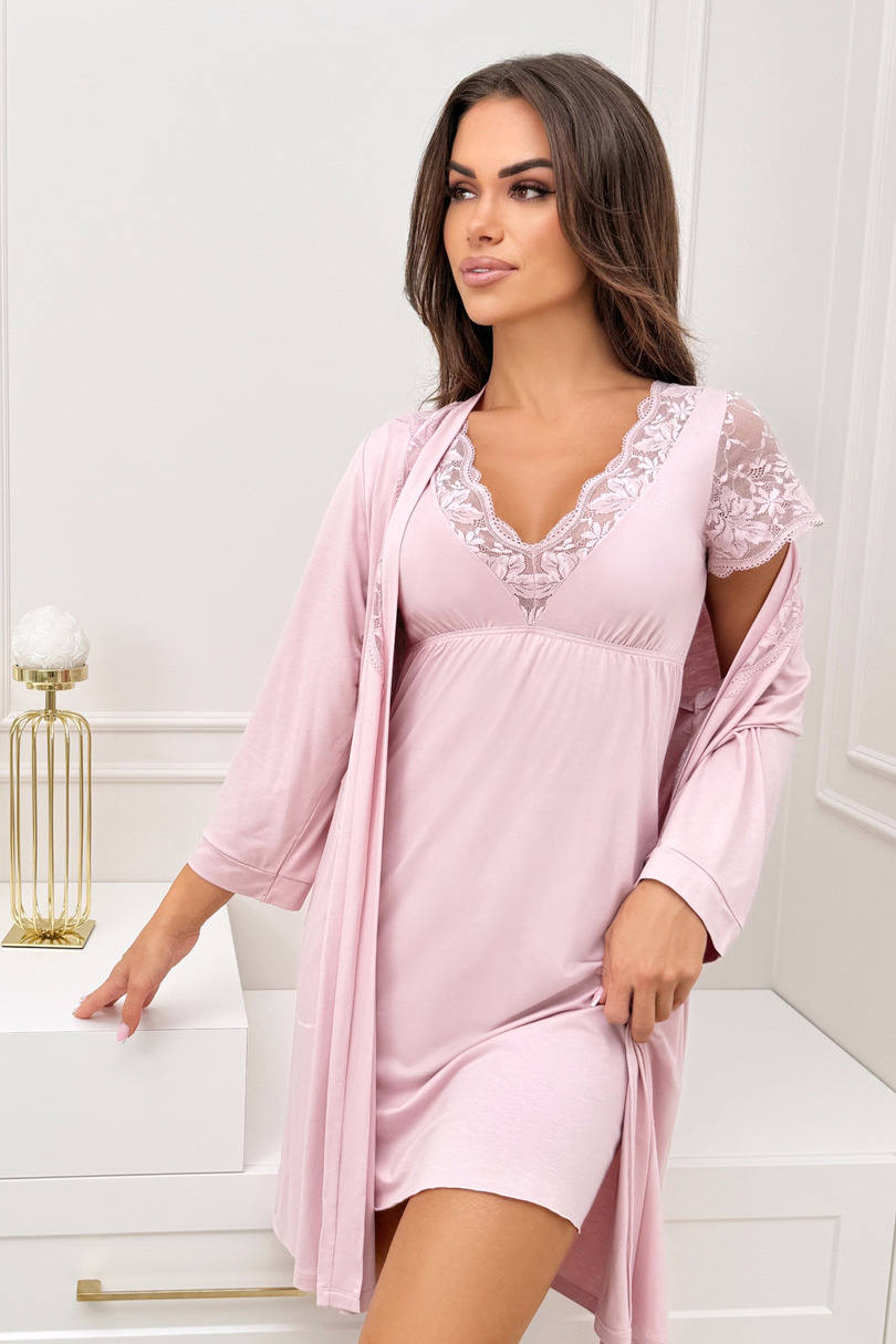 Нічна сорочка SONIA поєднує в собі жіночну елегантність, комфорт та високоякісні матеріали. Виготовлена з м'якої, дихаючої віскози, вона ідеально облягає тіло та забезпечує комфортний сон протягом усієї ночі. Ніжне мереживо на V-подібному вирізі та спині стримано підкреслює жіночність, надаючи сукні чуттєвості. Короткі мереживні рукави та злегка зібрана гумка під грудьми забезпечують ідеальну посадку та свободу рухів. Довжина вище коліна робить сукню SONIA практичною, але неймовірно стильною — ідеально підходить як для сну, так і для вечірнього відпочинку вдома. Склад: 90% віскоза, 5% еластан, 5% поліестер