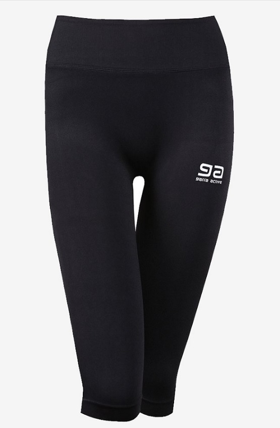 Чорні лосини з кольоровим поясом 3/4 довжини, підходять для всіх видів спортивних занять. Виготовлена з високоякісної поліамідно-поліефірної пряжі, яка швидко відводить піт, надаючи відчуття свіжості. Плоскі шви забезпечують комфорт під час руху.