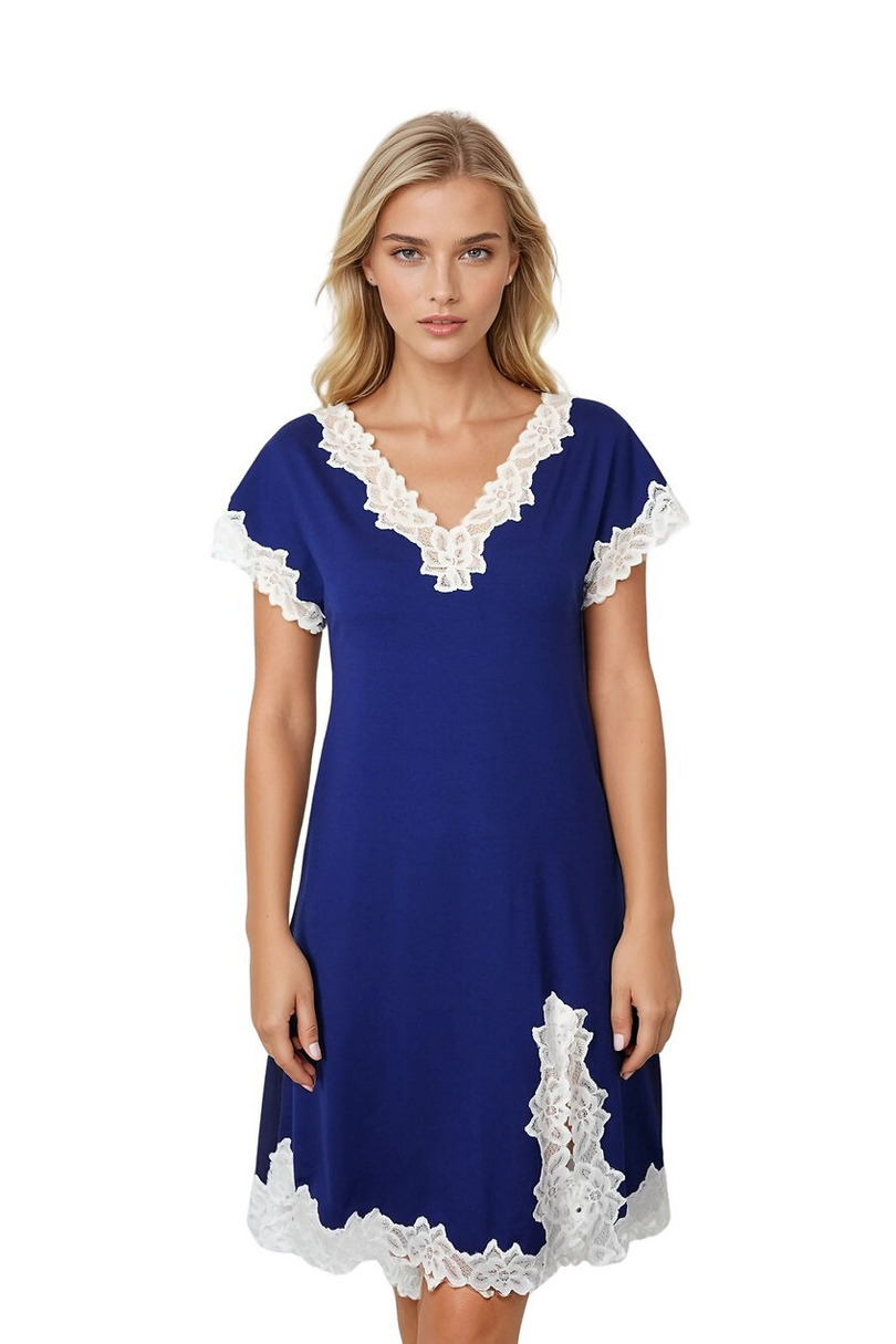 Нічна сорочка «First Lady Livia» – це елегантний та неймовірно жіночний варіант для жінок, які цінують комфорт та витончений, чуттєвий стиль. Виготовлена з високоякісної віскози з додаванням еластану, вона ідеально прилягає до тіла, забезпечуючи м’якість, гнучкість та повітропроникність протягом усієї ночі. Класичний V-подібний виріз гарно підкреслює лінію декольте та візуально стрункішає фігуру. Короткі рукави роблять її ідеальною як для теплих вечорів, так і для носіння цілий рік. Виріз горловини, рукави та ефектний розріз оздоблені ніжним квітковим мереживом, що надає їй романтичного відтінку та витонченої елегантності. Нічна сорочка «First Lady Livia» поєднує в собі повсякденний комфорт з унікальним, стильним оздобленням, що робить її ідеальним як практичним одягом для сну, так і чуттєвим варіантом для особливих моментів.