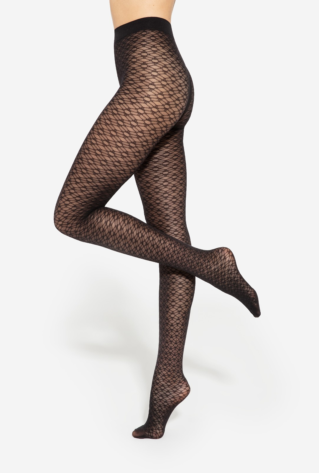 Жіночі мереживні колготки 40 ден з візерунком. Виготовлені з м'якої мікрофібри. Мають малий клин, матові. Склад: 91% поліамід, 9% еластан.