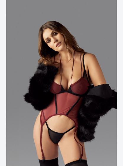 Корсет Parisel – це квінтесенція розкішної, чуттєвої білизни в елегантному чорному та бордовому коль..