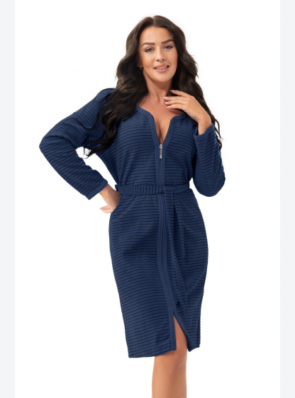 Жіночий бавовняний халат з довгими рукавами та дрібним ребристим візерунком. Застібка на блискавку т..