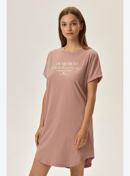 Жіноча сорочка з високоякісної бавовни. Довжина вище коліна, короткі рукави та напис спереду на рівн..