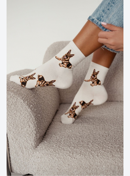 Ці жіночі бавовняні шкарпетки з мотивом великих, вірних собак – ідеальний вибір для любителів тварин..