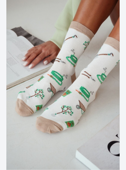 Ці жіночі бавовняні шкарпетки з грайливим візерунком у садовому стилі – ідеальний вибір для жінок, я..