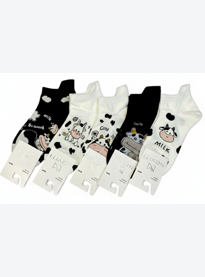 Жіночі бавовняні шкарпетки, оздоблені різнокольоровими принтами з коров'ячими візерунками. М'які та ..