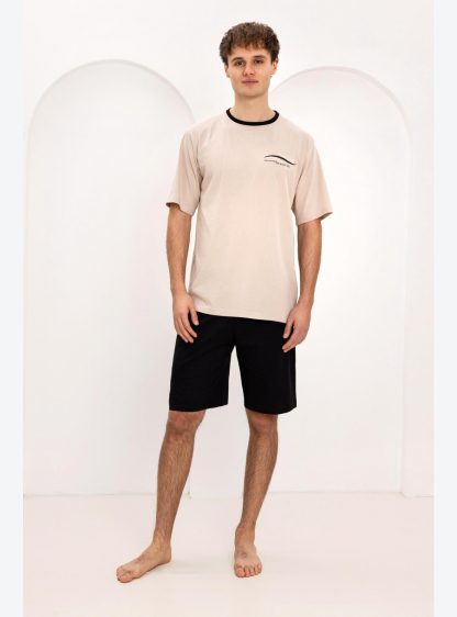 Жіноча піжама з високоякісних матеріалів. Футболка з короткими рукавами, круглим вирізом горловини т..