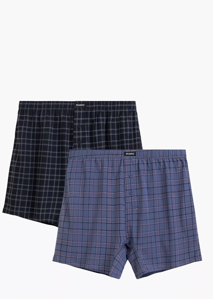 Ці боксерські шорти вільного крою мають універсальний пояс і довжину до середини стегна. Вони мають некомпресивний еластичний пояс з логотипом та дві ґудзики спереду. Поставляються в упаковці з двох штук. 100% бавовна.