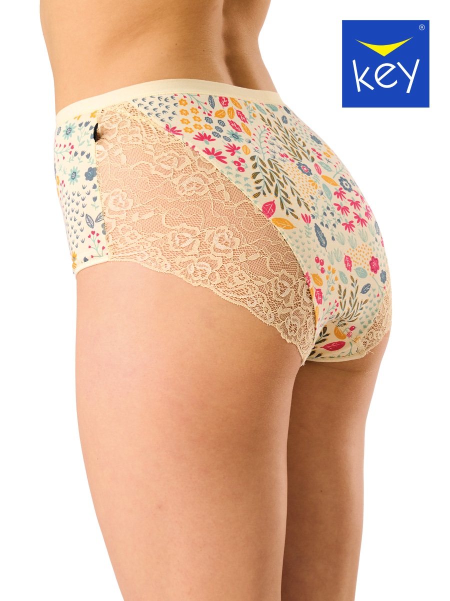 Жіночі труси з високою талією та широкими боками. М'які мереживні вставки додають легкості та шарму. Вони повністю закривають сідниці. Дві штуки в упаковці. Склад: 95% бавовна, 5% еластан.