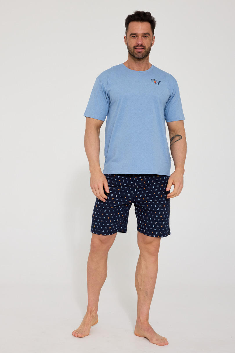 Чоловіча піжама SPORT 2 – це зручний та стильний варіант для чоловіків, які цінують комфорт та спортивний, невимушений стиль. Виготовлена зі 100% натуральної, дихаючої бавовни, вона гарантує приємні відчуття на шкірі та свободу рухів під час сну та вдома. Футболка з короткими рукавами та класичним круглим вирізом доповнена яскравим принтом на грудях, що надає виробу сучасного, динамічного вигляду. Короткі шорти з візерунком та еластичним поясом, оброблені бавовною, ідеально облягають тіло, не створюючи тиску. Піжама SPORT 2 – чудовий вибір для теплих днів та для тих, хто цінує комфорт у спортивному стилі.