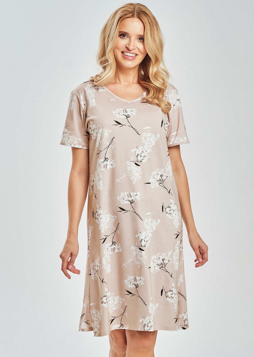Жіноча сорочка FIORA 3538 – це легкий та зручний варіант для жінок, які цінують натуральні матеріали та витончені, жіночні дизайни. Виготовлена зі 100% високоякісної бавовни, вона дихаюча, м'яка та приємна на дотик, що робить її ідеальною як для сну, так і для відпочинку вдома. Ніжний рослинний принт надає сорочці свіжого та елегантного вигляду, підкреслюючи її позачасовий характер. Модель з короткими рукавами до коліна забезпечує свободу рухів та високий комфорт. Невеликі розрізи внизу сорочки додають відчуття легкості та підвищують комфорт під час ходьби. Сорочка FIORA – чудовий вибір для теплих днів, а також практичний та естетичний подарунок. Виріб упакований у поліетиленовий пакет.