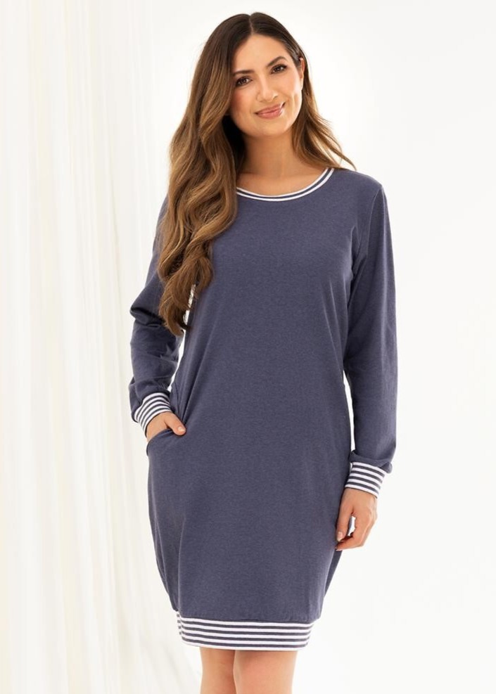 Жіноча сорочка 159 J/25 має спортивний дизайн, розроблений з урахуванням комфорту та зручності. Виготовлена зі 100% м'якої, дихаючої бавовни, вона забезпечує комфорт вечорами та ночами відпочинку. Довгі рукави та практичні кишені роблять її ідеальною не лише для сну, але й як одяг для відпочинку вранці чи ввечері. Простий спортивний крій та широкий розмір (M–XXL) гарантують, що кожна жінка почуватиметься в ній комфортно та природно.