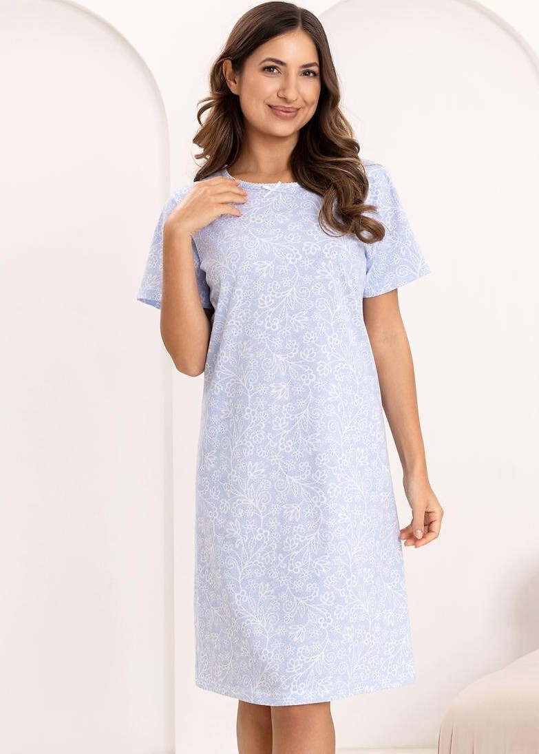 Жіноча сорочка з високоякісної бавовни з квітковим візерунком, м'яка та приємна на дотик. Має круглий виріз горловини, довжину до коліна та короткі рукави, ця сорочка виготовлена зі 100% бавовни.