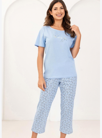 Жіноча піжама з високоякісної бавовни. Футболка має короткі рукави, круглий виріз горловини та вільн..