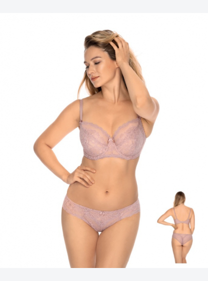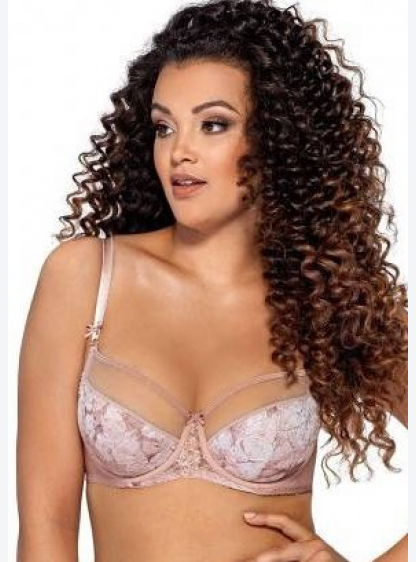 Напівм'який бюстгальтер, чашечки з візерункової сітки, підбиті мереживом. Модель не має вертикальних..