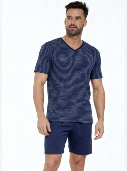 Чоловіча бавовняна піжама. Футболка в смужку, короткий рукав, V-подібний виріз. Доповнюють комплект ..