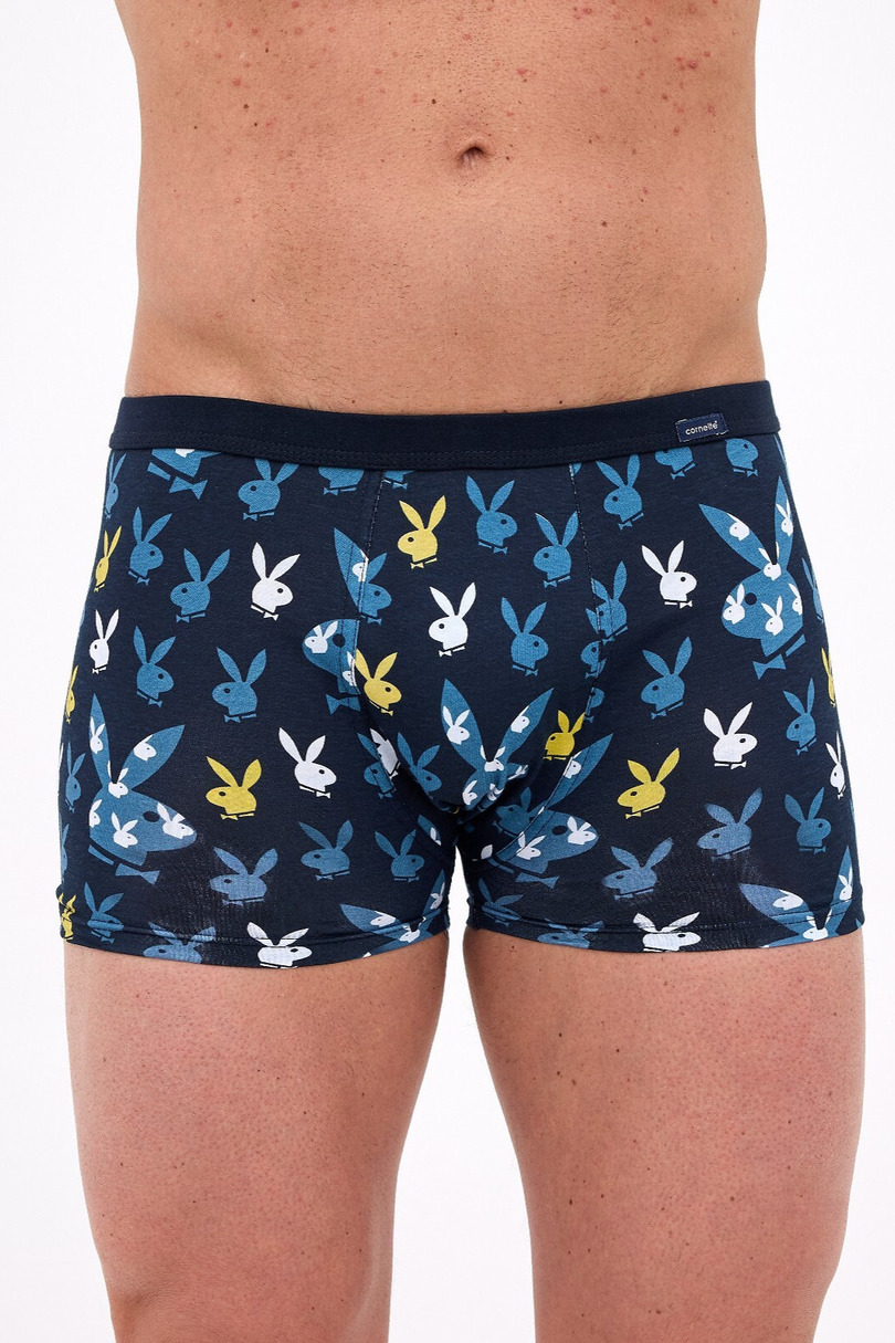 Ці чоловічі шорти ідеально сидять, прикрашені грайливим принтом із зайчиком. Вони мають зручний еластичний пояс. Вони виготовлені з 95% бавовни, 5% еластану.