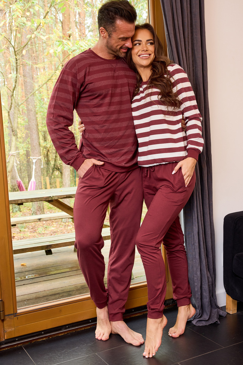 Зручна та стильна чоловіча піжама DR 117/320 LOOSE 16 – чудовий вибір для чоловіків, які цінують комфорт та класичний вигляд. Виготовлена з високоякісної бавовни, вона гарантує чудову повітропроникність та м’якість. Ця футболка з довгими рукавами та круглим коміром, прикрашена модним смугастим візерунком, ідеально поєднується з однотонними довгими штанами. Еластичний пояс та ребристі манжети й низ забезпечують ідеальну посадку та комфорт. Упакована в елегантну коробку, вона стане чудовим подарунком.