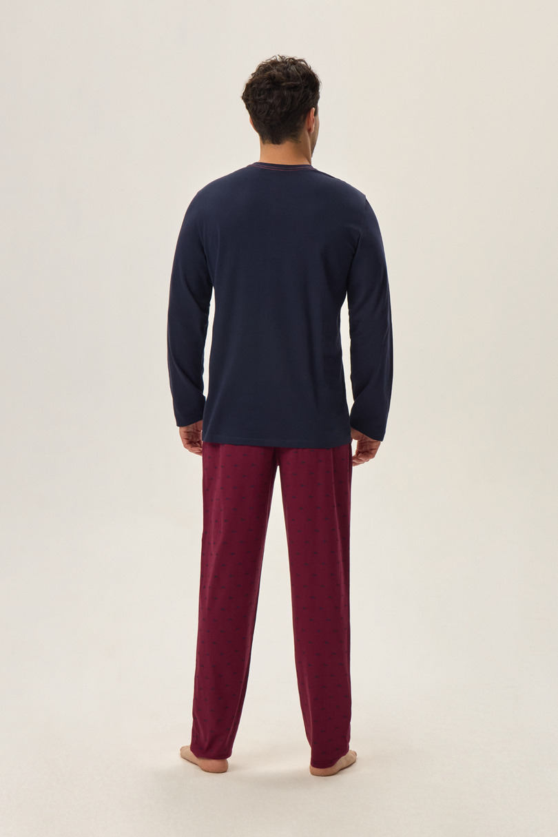 Чоловіча бавовняна піжама, довгі однотонні штани, топ з довгими рукавами. Склад: 100% бавовна