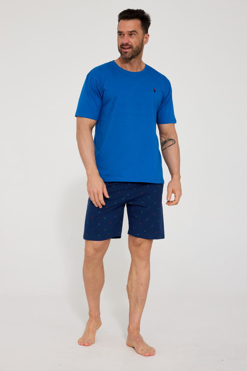 Чоловіча піжама KR 326/208 TOUCAN – це чудовий вибір для чоловіків, які цінують комфорт, натуральні матеріали та витончені, модні деталі. Виготовлена зі 100% високоякісної бавовни, вона гарантує повітропроникність, м'якість та комфорт навіть у найспекотніші ночі. Футболка з короткими рукавами та круглим вирізом забезпечує свободу рухів, а дрібна, елегантна вишивка із зображенням тукана на грудях додає унікального літнього штриха. Короткі шорти з візерунком ідеально доповнюють комплект, створюючи стильну та легку піжаму, ідеальну для сну та відпочинку вдома. Еластичний пояс, оброблений бавовною, забезпечує ідеальну посадку без тиску. Піжама TOUCAN – це чудовий літній варіант, а також практична та естетична ідея для подарунка. Склад: 100% бавовна
