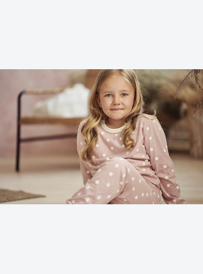 Піжама для дівчинки з високоякісного бавовни в горошок. Довгий рукав, довгі штани. Склад: 100% бавов..
