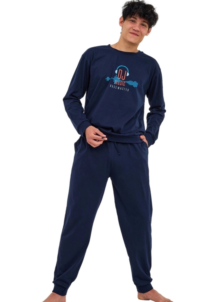 Піжама Cornette Boy Fun&Young DR 998/56 DJ поєднує в собі комфорт та модний стиль. Виготовлена зі 100% високоякісної бавовни, вона м'яка, дихаюча та ніжна до шкіри, забезпечуючи комфорт протягом усієї ночі. Футболка з довгими рукавами та круглим вирізом горловини прикрашена великим барвистим принтом, що надає комплекту сучасного вигляду. Комплект включає довгі однотонні штани з практичними кишенями та зручним еластичним поясом. Еластичні манжети, поділ та штанини підвищують комфорт. Комплект упакований в естетично привабливу коробку – чудова ідея для подарунка.