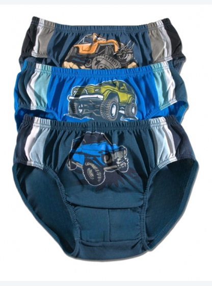 Дитячі труси з яскравим принтом. Виготовлені з м'якої 100% бавовни. Доступні в упаковках по три штук..