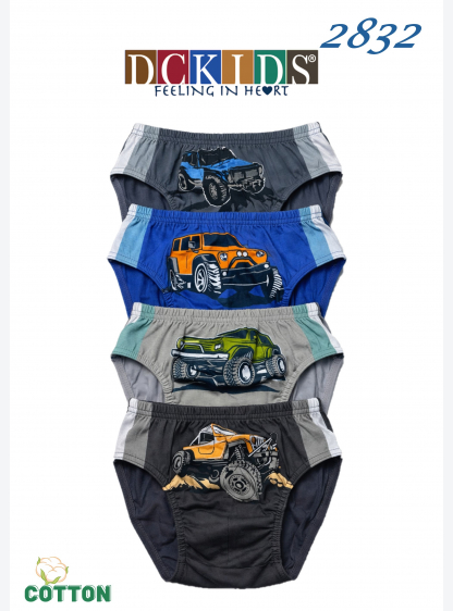 Дитячі труси з яскравим принтом. Виготовлені з м'якої 100% бавовни. Доступні в упаковках по три штук..