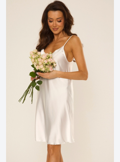 Жіноча футболка простого крою з легкого гладкого атласу. Довжина до коліна, вузькі регульовані брете..