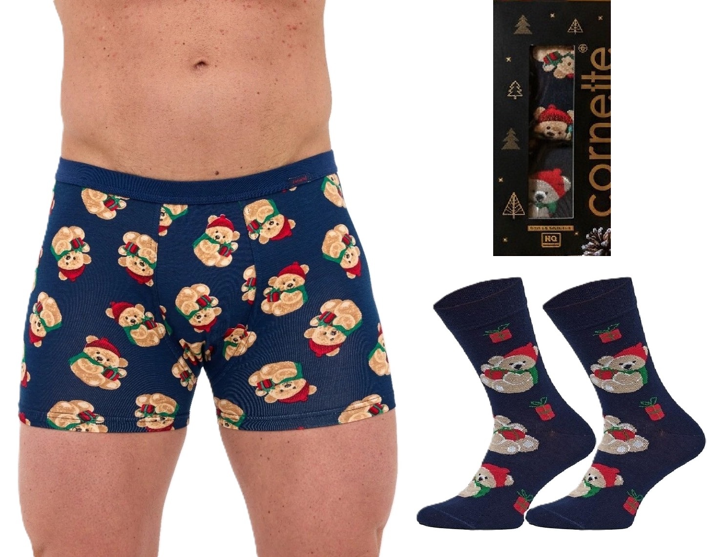 Цей чоловічий різдвяний комплект 2-в-1 – ідеальний подарунок для чоловіка, який цінує комфорт і стиль. Комплект включає візерунчасті боксерські шорти та відповідні шкарпетки у святковому стилі. Боксерські шорти виготовлені з високоякісної бавовни з додаванням еластану, що забезпечує ідеальну посадку, не обмежуючи рухів. Вони мають еластичний пояс, оброблений бавовною, для додаткового комфорту. Шкарпетки виготовлені з м’якої бавовни з плоскими швами та не стискаючим манжетом для комфорту протягом усього дня. Упаковані в елегантну коробку, вони стануть ідеальним святковим подарунком!