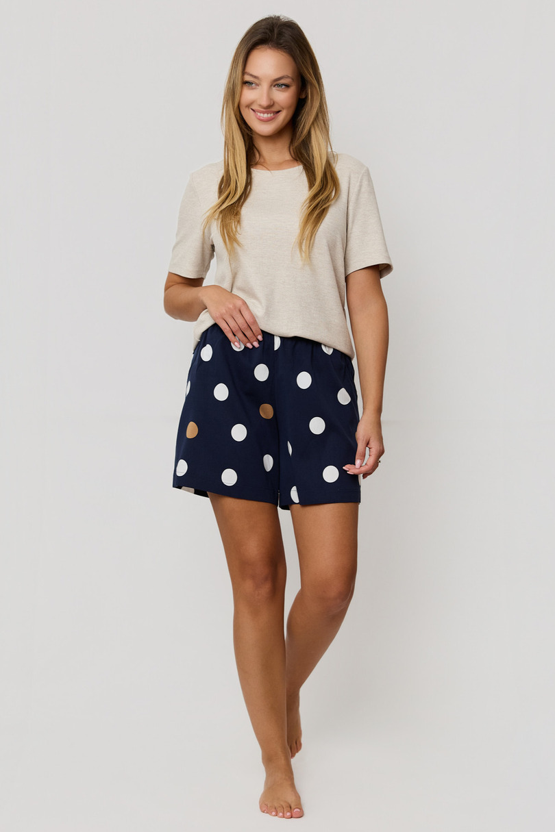 Комплект короткої піжами Oceane – ідеальний вибір для жінок, які цінують комфорт та елегантність, навіть під час сну. Комплект включає топ з короткими рукавами та шорти класичного крою, які ідеально облягають фігуру. М'яка та дихаюча віскозна тканина з додаванням еластану забезпечує максимальний комфорт та свободу рухів. Додаткові кишені в шортах додають практичності, а ніжна обробка надає піжамі витонченого жіночого шарму. Піжама упакована в елегантний мішечок на блискавці. Склад: топ 93% віскоза, 7% еластан, штани 98% віскоза, 2% еластан