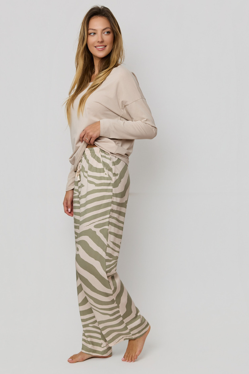 Довгі піжами Selene – це ідеальне поєднання елегантності та повсякденного комфорту. Виготовлені з високоякісних тканин, вони забезпечують максимальний комфорт для сну та відпочинку. Довгі штани та рукави чудово захищають від холоду, а практичні кишені додають функціональності. Ніжний матеріал з переважанням бавовни та невеликою кількістю еластану створює м'яку, зручну посадку, гарантуючи повну свободу рухів. Витончений дизайн та вишукані деталі роблять їх чудовим вибором для жінок, які цінують стиль та комфорт у затишку своїх домівок. Склад: Верх 95% бавовна 5% еластан; Низ 100% віскоза