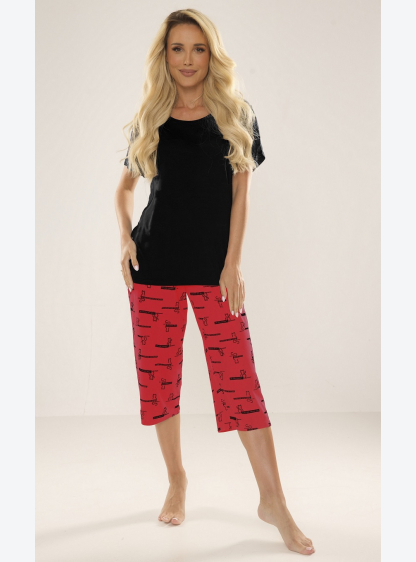 Жіноча піжама з високоякісної віскози. Футболка з короткими рукавами, круглим вирізом. Штани довжино..