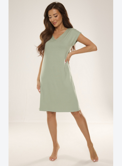 Жіноча нічна сорочка з якісної ніжної віскози. Короткі рукави, ніжна декоративна обробка на горловин..