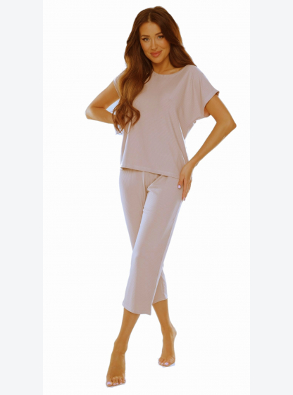 Жіноча піжама з якісної ніжної віскози в рубчик. Короткий рукав, брюки 7/8. Склад: віскоза 94%, елас..