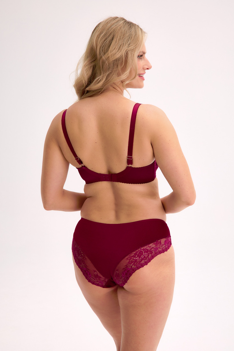 Цей напівм'який бюстгальтер насиченого бордового відтінку ідеально підходить для жінок, які цінують елегантність та ідеальну посадку. Його дизайн ретельно розроблений для максимального комфорту та вражаючого вигляду – бретельки плавно з'єднуються з м'якими чашечками, гарантуючи стабільну підтримку. Витончено вишите мереживо делікатно обрамляє чашечки та чуттєво тягнеться до бретелек, створюючи розкішний образ. Цей стиль ідеально підходить як для щоденного носіння, так і для особливих випадків – коли ви хочете почуватися красивою та впевненою. Склад: 53% поліамід, 20% поліестер, 14% бавовна, 10% еластан, 3% поліуретан