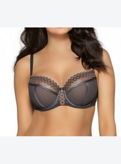 Напівм'який бюстгальтер на кісточках, чашки з графітової сітки, верх і кокетка прикрашені золотою ви..