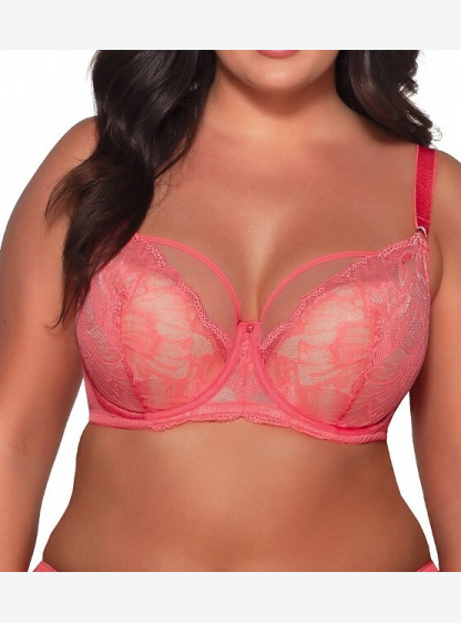 Напівм'який бюстгальтер, чашки з квіткового коралового мережива на кісточках. Прозора сітка по верхн..