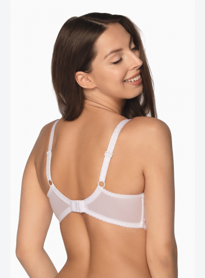 Красивий жіночий бюстгальтер з напівпідкладкою. Прикрашена мереживом з квітковим мотивом. Склад: 53%..