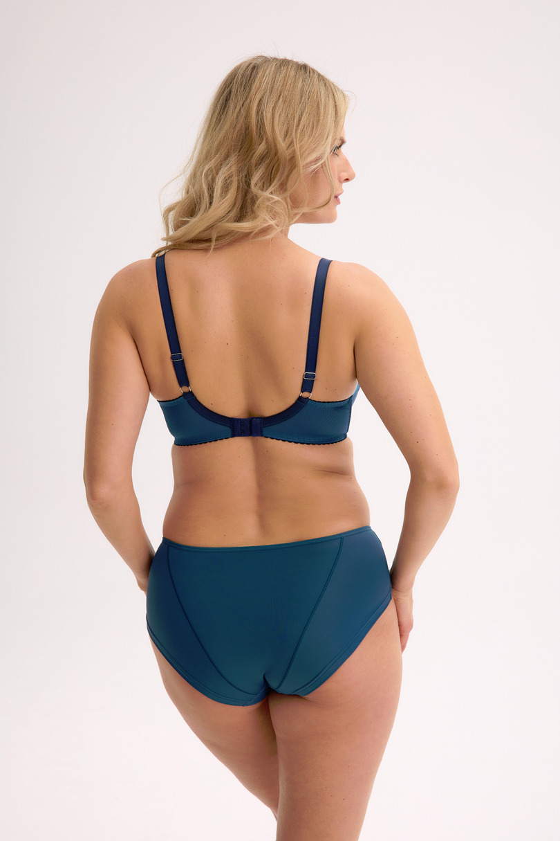 Бюстгальтер весна-літо 2010 року – один з наших найперевіреніших та найвідоміших моделей, розроблений для максимального комфорту та ідеальної посадки. Верхні чашечки виготовлені з ніжного, прозорого тюлю, а нижні – з підтримуючого піноматеріалу, покритого багатою ботанічною вишивкою. Ця модель має поглиблені чашечки, які ефективно запобігають випаданню грудей та ідеально тримають їх на місці. Гумка з боковими кісточками виготовлена з однорідної мікрофібри – вона менш еластична, але дуже стійка. Високий виріз горловини та напіввідкритий виріз забезпечують не тільки гарний вигляд, але й захист і комфорт під час щоденного носіння. Ця модель була створена для жінок, які відмовляються йти на компроміс між комфортом та зовнішнім виглядом. Склад: 70% поліестер, 24% поліамід, 6% еластан