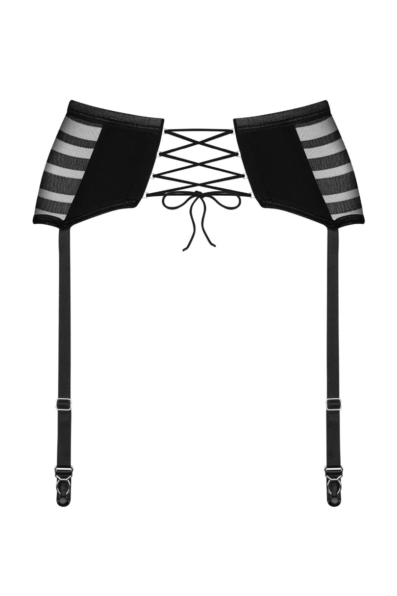 Пояс для панчіх Lune Bellis – це класичний та неймовірно чуттєвий виріб, який ідеально доповнить будь-який елегантний образ із спідньої білизни. Розроблений для того, щоб підкреслити талію та жіночні вигини, чорна модель поєднує в собі позачасовий дизайн із сучасними деталями. Виготовлений з розкішних, м'яких тканин, пояс забезпечує комфорт та ідеальну посадку. Гладкий матеріал чудово поєднується з прозорою сіткою та декоративними бретельками різної ширини, що надає виробу вишуканого характеру. Вертикальні кісточки м'яко моделюють фігуру та стабілізують структуру. Модель має інтегровані регульовані бретельки для панчіх, що дозволяє поясу ідеально адаптуватися до індивідуальних потреб. Ефектна шнурівка ззаду не лише підкреслює чуттєвий характер білизни, але й забезпечує точну посадку. Пояс для панчіх Lune Bellis – ідеальний вибір для жінок, які цінують стиль, якість та деталі.