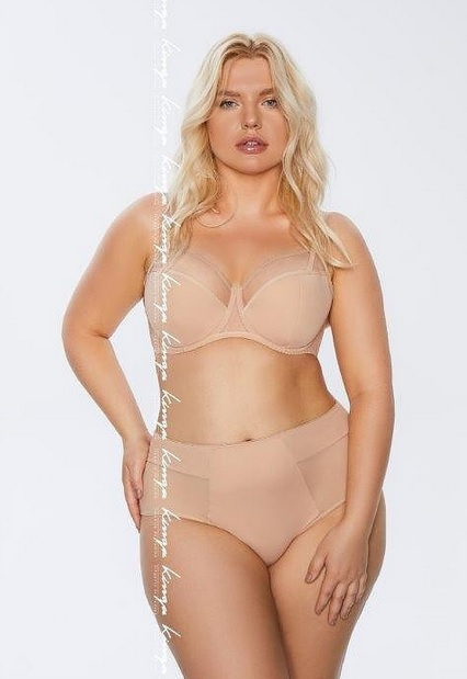 Жіночі трусики, виготовлені з однорідного мікроволокна з еластичною сіткою. Спереду прикрашена смугами. Спинка з гладкого мікроволокна. Вони ідеально облягають тіло, забезпечуючи комфорт носіння. Склад: 60% поліамід, 20% еластан, 17% поліестер, 3% бавовна.