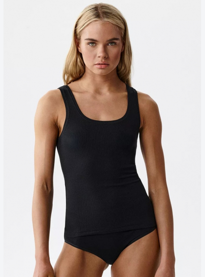 Ця жіноча бавовняна футболка в ребристий візерунок має широкі бретелі. Маст-хев! Ідеально підходить ..