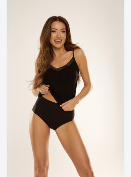 Жіноча футболка з віскози на товстих лямках, верх оброблений мереживом. Склад: 92% віскоза, 5% поліа..