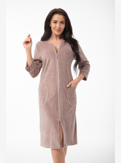 Зручний жіночий халат на блискавці з приємного до тіла велюру. Кишені на висоті стегон Склад: 80% ба..