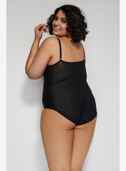 Топ коригує живіт, піднімає груди. Охоплює область від лінії нижче грудей до стегон. Ремені запобіга..