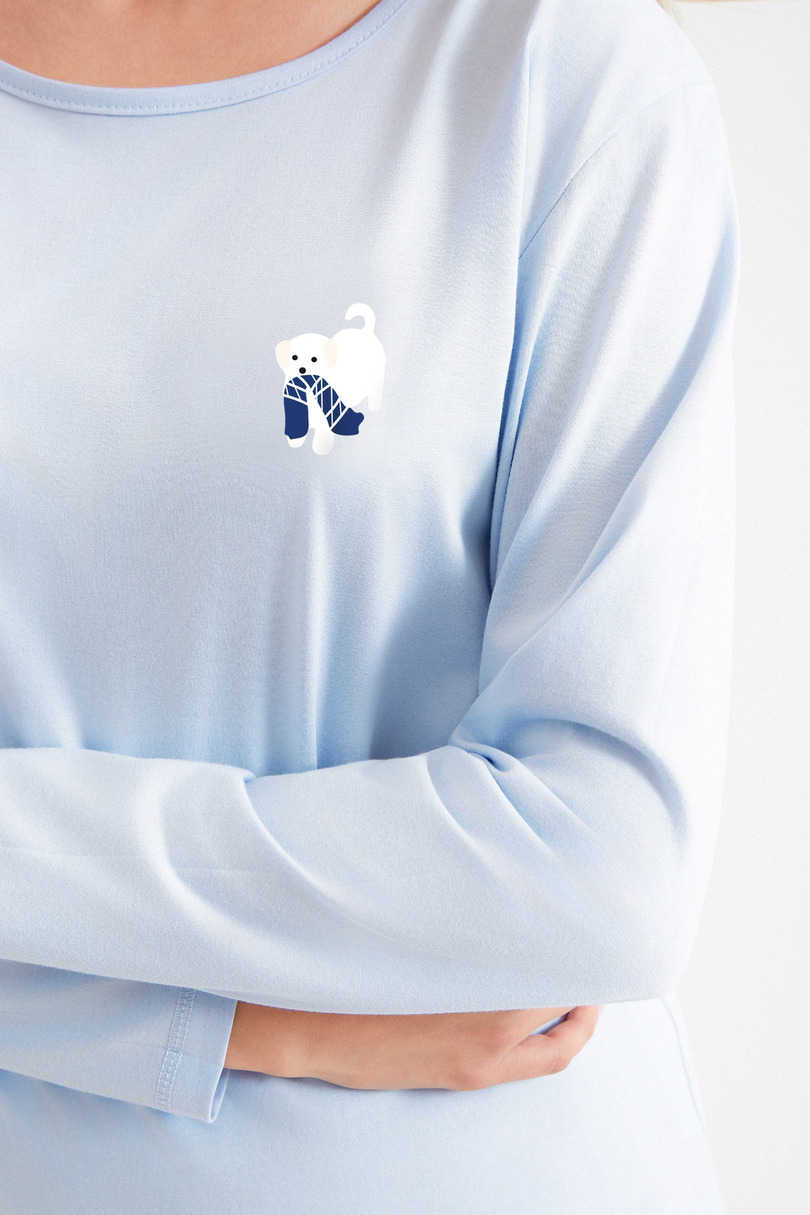Жіноча піжама Zola 3511 ідеально підходить для жінок, які цінують класичний комфорт з елегантним відтінком. Виготовлена зі 100% м'якої, дихаючої бавовни, вона забезпечує максимальний комфорт під час сну та свободу рухів. Топ прямого крою з довгими рукавами має тонкий принт на грудях, додаючи йому витонченості. Візерунчасті довгі штани ідеально поєднуються з однотонною блузкою, створюючи стильний та затишний комплект, ідеальний для будь-якої пори року.