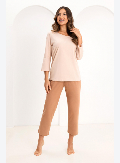Жіноча піжама з високоякісної, ніжної та приємної на дотик віскози. Топ з рукавами 3/4 має ніжний ві..