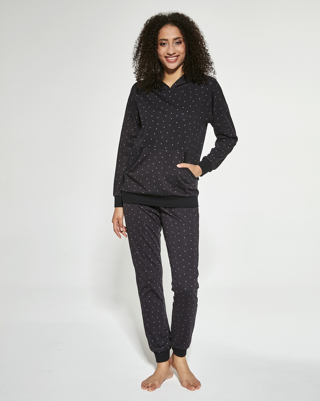 Жіноча піжама з високоякісної бавовни. Блуза з капюшоном-кенгуру, довгі штани оброблені ранцем. Склад: 100% бавовна.