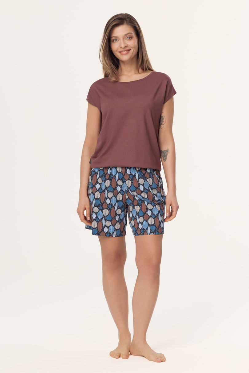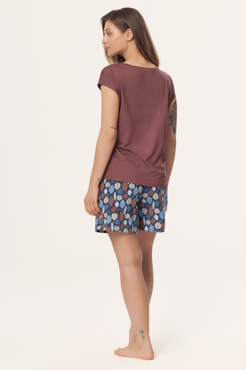 Жіноча піжама Matilda – це ідеальне поєднання комфорту, жіночного стилю та високоякісних матеріалів. Виготовлена з м’якої та дихаючої віскози з еластаном, вона забезпечує максимальний комфорт та ідеальну посадку. Футболка з короткими рукавами приглушеного, елегантного кольору чудово поєднується з вільними шортами, прикрашеними модним квітковим візерунком. Піжама Matilda ідеально підходить як для сну, так і для зручного дому в теплі дні. Натуральна тканина приємна для шкіри, а еластичність матеріалу гарантує свободу рухів протягом усієї ночі.